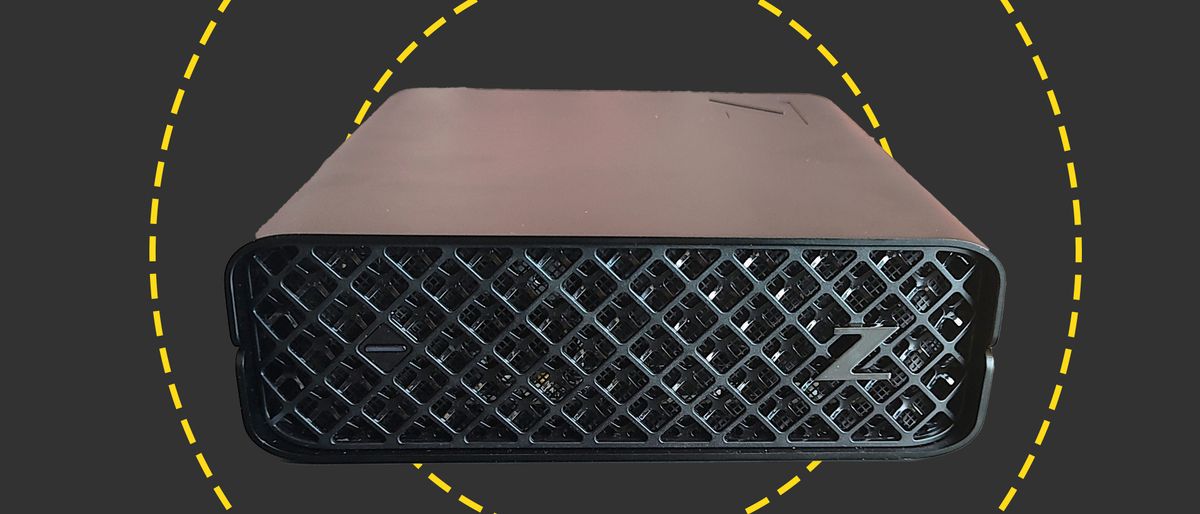 Both SODIMM sockets were already occupied in our test machine, but there was a spare M.2 slot for a second SSD. The system maximum is quoted as 4TB of storage and 64GB of RAM. There's no power supply inside, hardly a shock given the Z2 Mini G9's external dimensions, so you must find a home for the relatively large (200 x 100 x 25mm) 280W external power adapter.