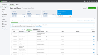 To add transactions, you'll have to download them in CSV, QFX, QBO or OFX format from your bank. With that file to hand, you can go to the banking tab, select File Upload from the pull-down on the Update button, choose the relevant file and follow clear instructions to appropriately configure your transactions for QuickBooks. Once that's done, the account appears under Banking so you can easily go through your transactions.